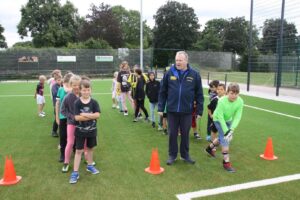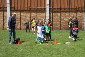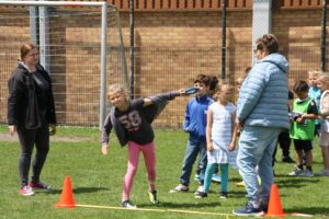 Das Sportabzeichen – Kurzstrecke und Werfen wurden mit den Kindern geübt und die Zeiten bzw. die Weiten der Würfe wurden von den Betreuern festgehalten.